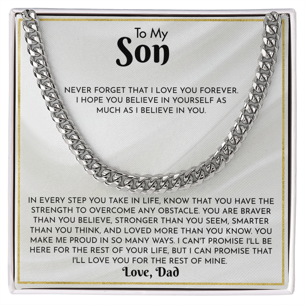 Perfect for Birthdays, Graduation Day, Christmas, or "just because," this gift is an Unforgettable way to show your Son how much he means to you.