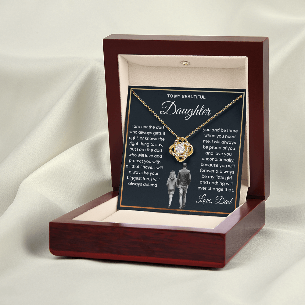 To My Beautiful Daughter – “Forever My Little Girl” Love Knot Necklace