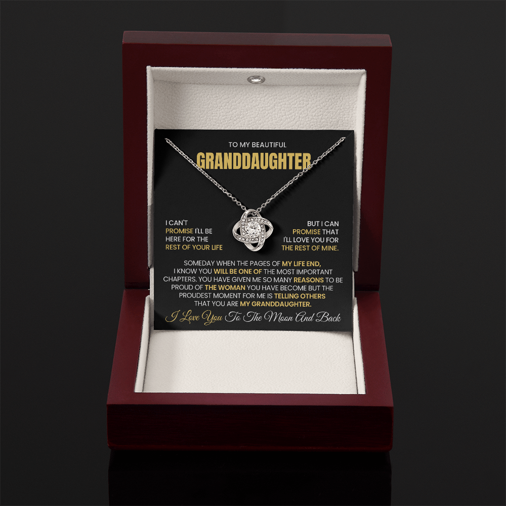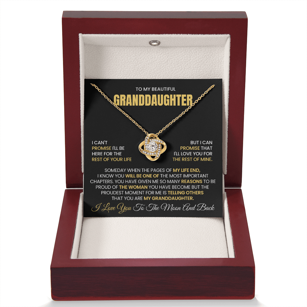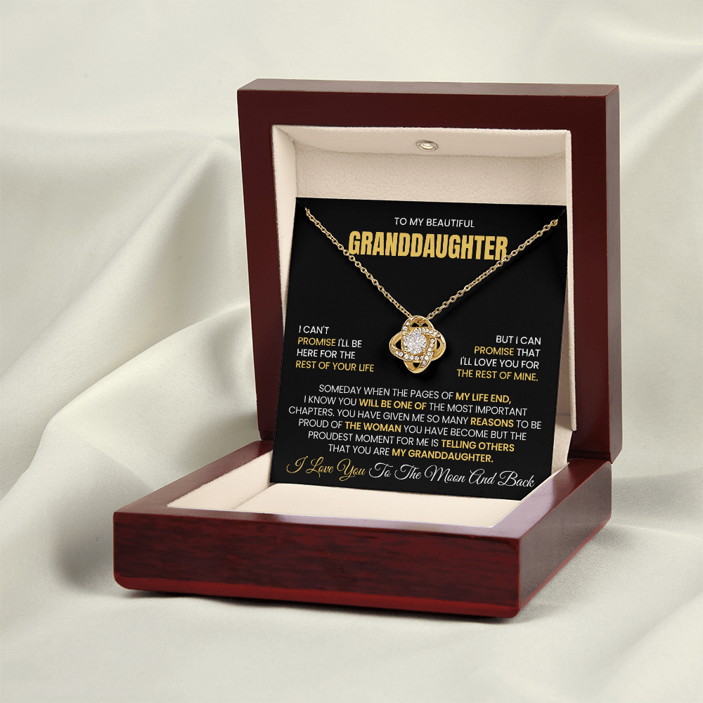 To My Beautiful Granddaughter – “I Love You To The Moon And Back” Love Knot Necklace