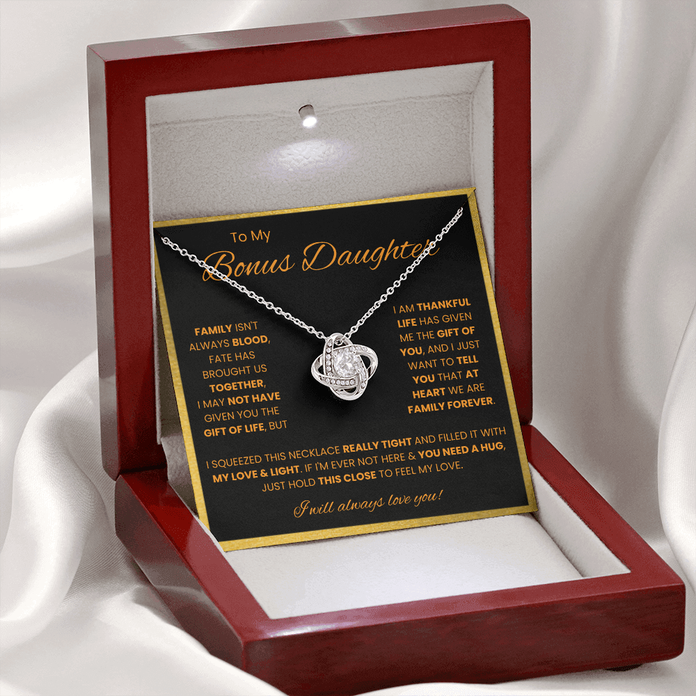 To My Bonus Daughter – “Family Forever” Love Knot Necklace