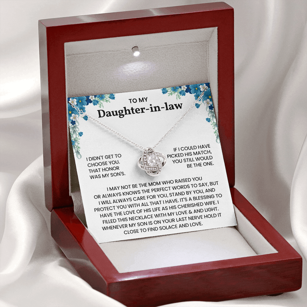 To My Daughter-in-Law – "A Blessing to Our Family" Love Knot Necklace