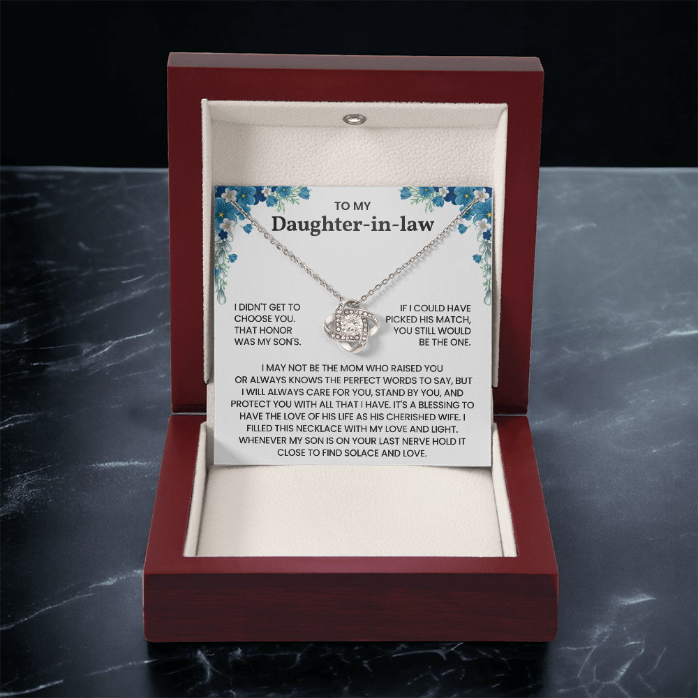 To My Daughter-in-Law – "A Blessing to Our Family" Love Knot Necklace