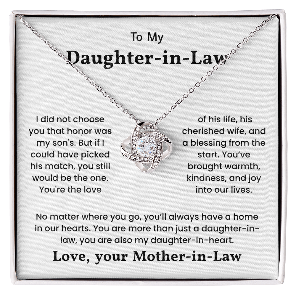 To My Daughter-in-Law – "Daughter-in-Heart" Love Knot Necklace