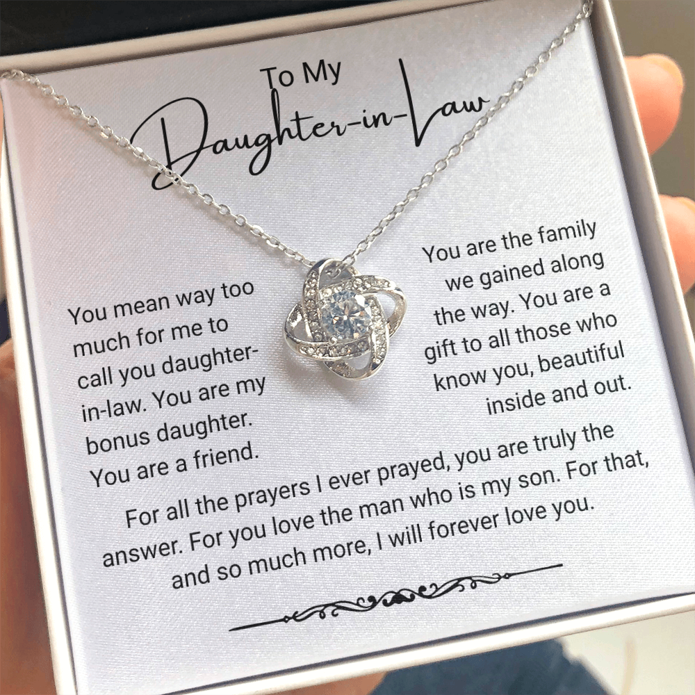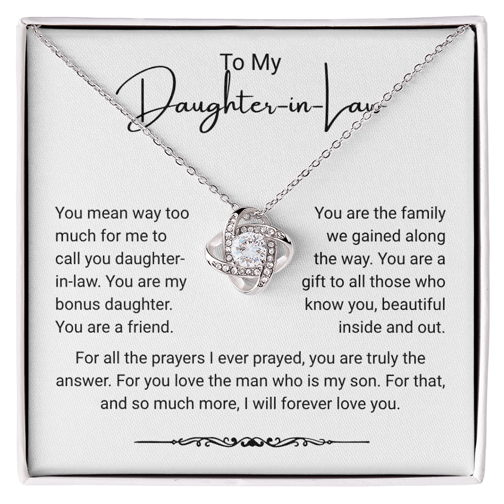 To My Daughter-in-Law – “You Are My Bonus Daughter” Love Knot Necklace
