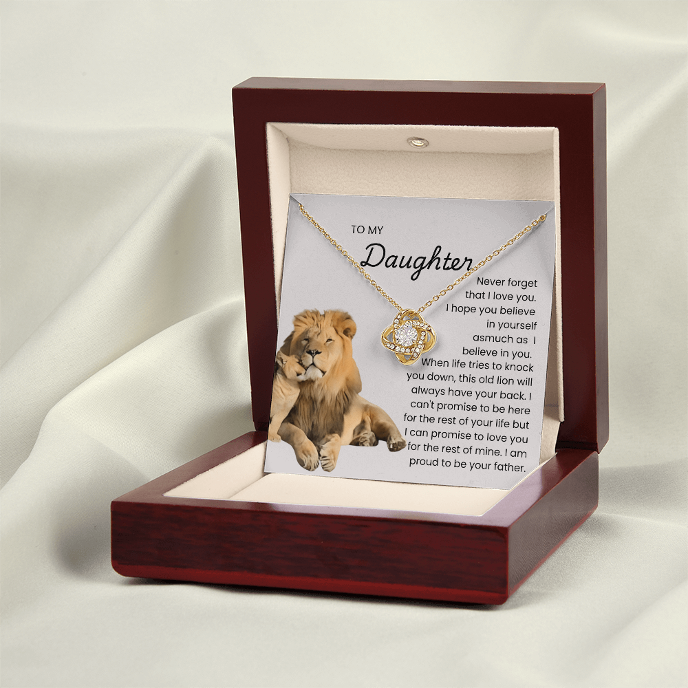 To My Daughter – “This Old Lion Will Always Protect You” Love Knot Necklace