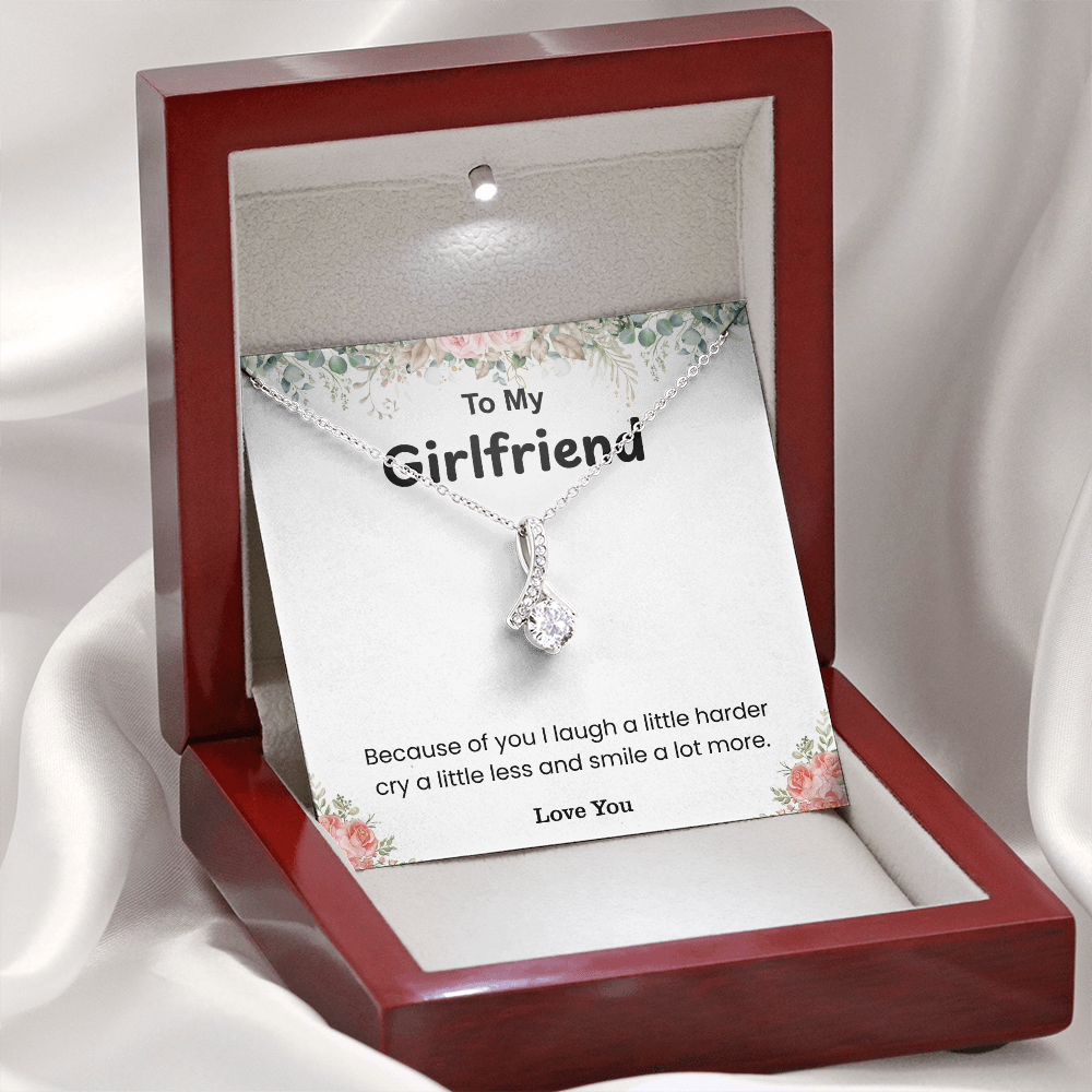 Celebrate the love and joy your girlfriend brings into your life with this meaningful necklace and heartfelt message card. The touching words remind her how much happiness she adds to your everyday moments—making you laugh harder, cry less, and smile more. A thoughtful and romantic gift for anniversaries, Valentine’s Day, birthdays, or simply to say thank you for being you.