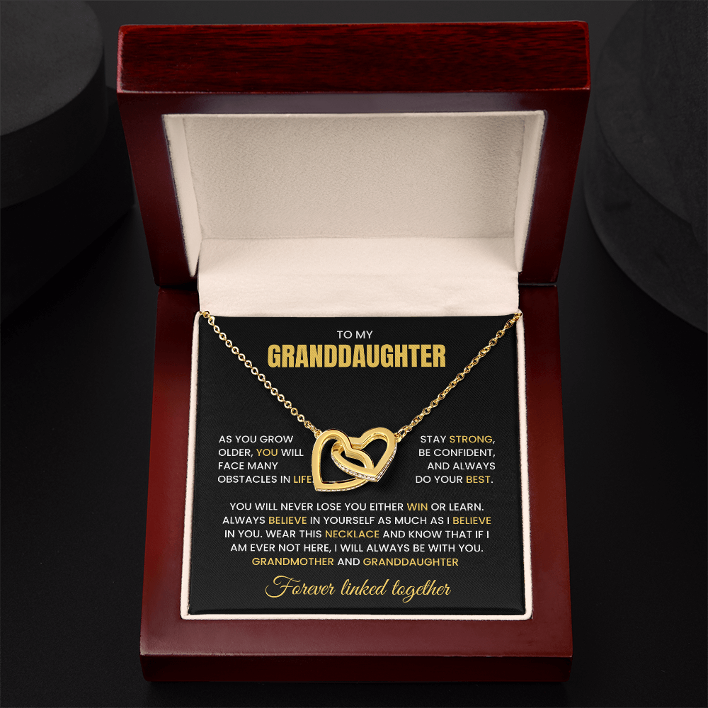 To My Granddaughter-"Stay Strong" Interlocking Hearts Necklace