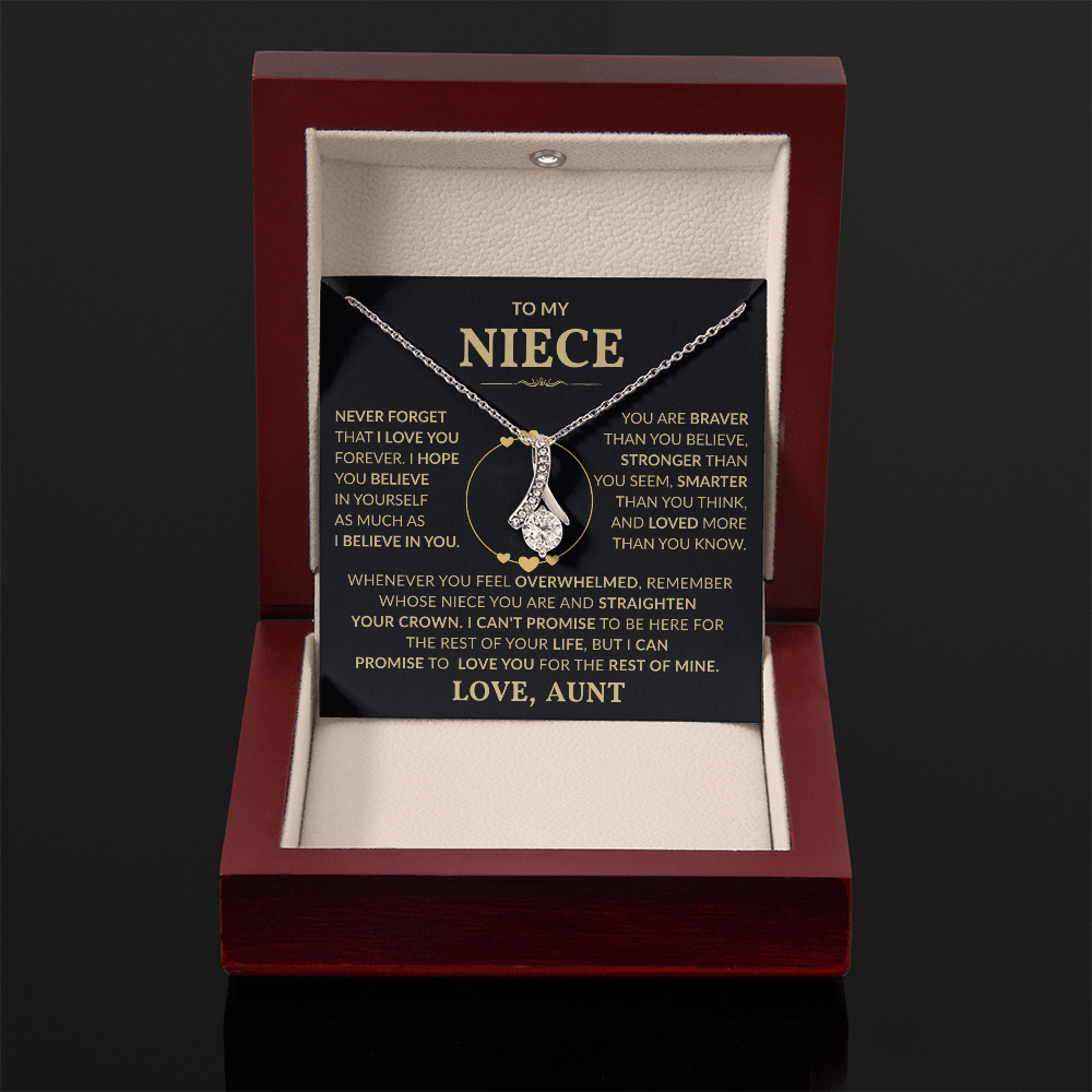 This meaningful necklace is more than a simple accessory. It is a daily reminder of courage, confidence, and unconditional love from an aunt who stands proudly by her niece's side. Every time she wears it, she will feel the encouragement, strength, and deep affection wrapped within your words.