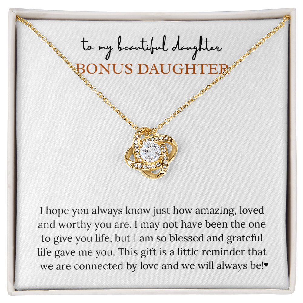 To My Wonderful Bonus Daughter – “Connected by Love” Love Knot Necklace